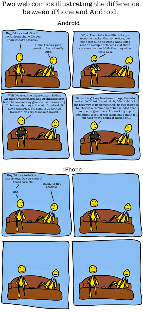 Just in case you weren't clear on the difference between the iPhone and Android phones, here is a helpful comic to clear it up: